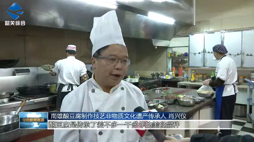 眼前这位正在准备酿豆腐食材的师傅是“南雄酿豆腐”制作技艺非物质文化遗产传承人肖兴仪,他是一位土生土长的南雄人,八十年代初从韶关商业学校烹饪专业毕业,回到南雄向老一辈厨师学习传统烹饪技法,到如今制作酿豆腐已经有四十个年头。 “南雄酿豆腐”制作技艺非物质文化遗产传承人 肖兴仪:酿豆腐是传承了差不多一千多年的美食品种,我们一参加工作就学习制作它,因为大家都需要它,逢年过节都会有酿豆腐。 今年,肖兴仪为了让南雄酿豆腐这项非物质文化遗产更好地传承下去,加入了邓祖荣“粤菜师傅”省级大师工作室,成为其主要成员;此外,肖兴仪与南雄旅游协会餐饮分会借助“粤菜师傅”工程,预计明年年初在南雄成立粤菜师傅大师工作室,建立名师带徒制度,传授技艺特长及绝技绝活。 南雄旅游协会餐饮分会会长 李辉祥:南雄有很多美食,如酿豆腐、梅岭鹅王、酸笋鸭、水口鱼,我们就想由“粤菜师傅”的带动,借这个机会去培养更多的厨师掌握这项技能,把南雄美食传到韶关以外或者广东省以外,传承南雄餐饮文化。 南雄市人社局副局长 钟达峰:师傅带徒弟是不向市民收费的,我们有专项资金,现在已经向我们本级财政申请了10万元做为工作经费,我们主要还是想通过增加创业和就业来促进我市的乡村振兴和精准扶贫。 今年以来,韶关市为加大技能人才培养力度,充分发挥餐旅烹饪协会和企业作用,推行企业新型学徒制,以“师带徒”方式,培养了一批适合生产一线制作能力的烹饪技能人才。